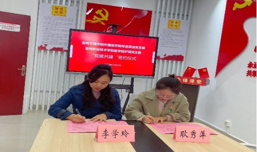 会上,护理党支部书记李学玲首先对best365中国官方网站专业教工党支部一行来支部党建交流表示热烈欢迎。在观看护理党支部党建双创工作纪录片后,医公司党总支书记周敏介绍了宝鸡职院和医公司的基本情况,着重介绍了12345党建工作模式。同时对公司专业英语党支部入围全国高校“双带头人”教师党支部书记“强国行”专项行动团队表示祝贺。公司党委书记官莉萍介绍了best365中国官网及best365中国官方网站的基本情况,对医公司护理党支部在全国样板支部创建过程中的成效给予充分肯定。会中,护理党支部书记李学玲与专业英语党支部书记耿秀萍就党建共建工作举行了签约仪式,为接下来的党建共建工作打下基础。