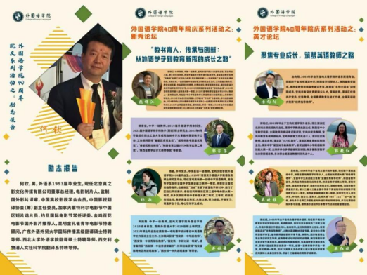27日下午,在高新校区立心楼举办了三场员工论坛。在“励志报告”环节,北京真之影文化传媒公司总经理、中国翻译协会影视译制委员会副主任委员何钦作了题为《从师范生到电影制片人》的报告,激励同学们在学业和人生道路上奋勇前行。在“英才论坛”环节,陕西省英语学科带头人、宝鸡渭滨中学冶向阳,省级教学能手、宝鸡渭滨中学教务处副主任郭艳红,西安市教育科学研究院教研员、人教社英语教材评审专家樊红斌,陕西省英语学科带头人、渭南高级中学吴晓雅分享了经验。在“新秀论坛”环节,西安市第85中骨干教师张锦江、西安铁一中陆港公司井鸽舞、西北工业大学咸阳启迪中学郭家玺、宝鸡高新第一初级中学杨敏,分别以“聚是一团火、散是满天星”“一位中学英语教师的职业成长”等为主题,展现了青年教师的风采。