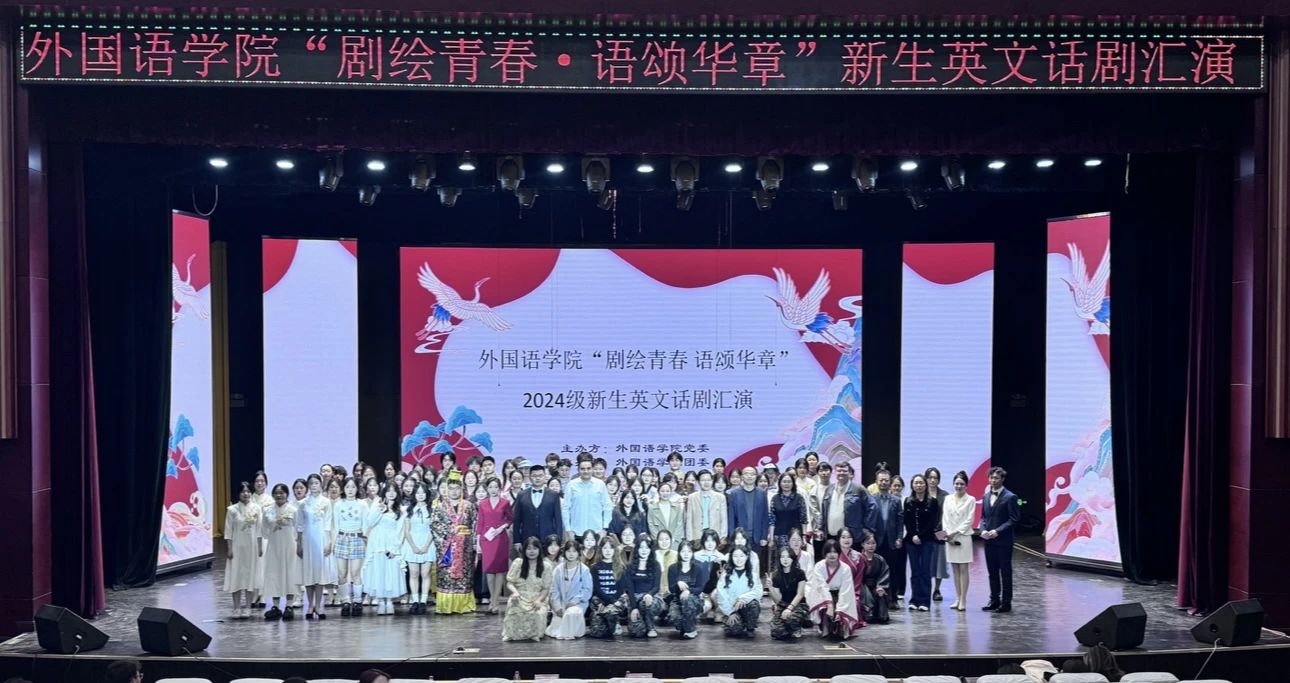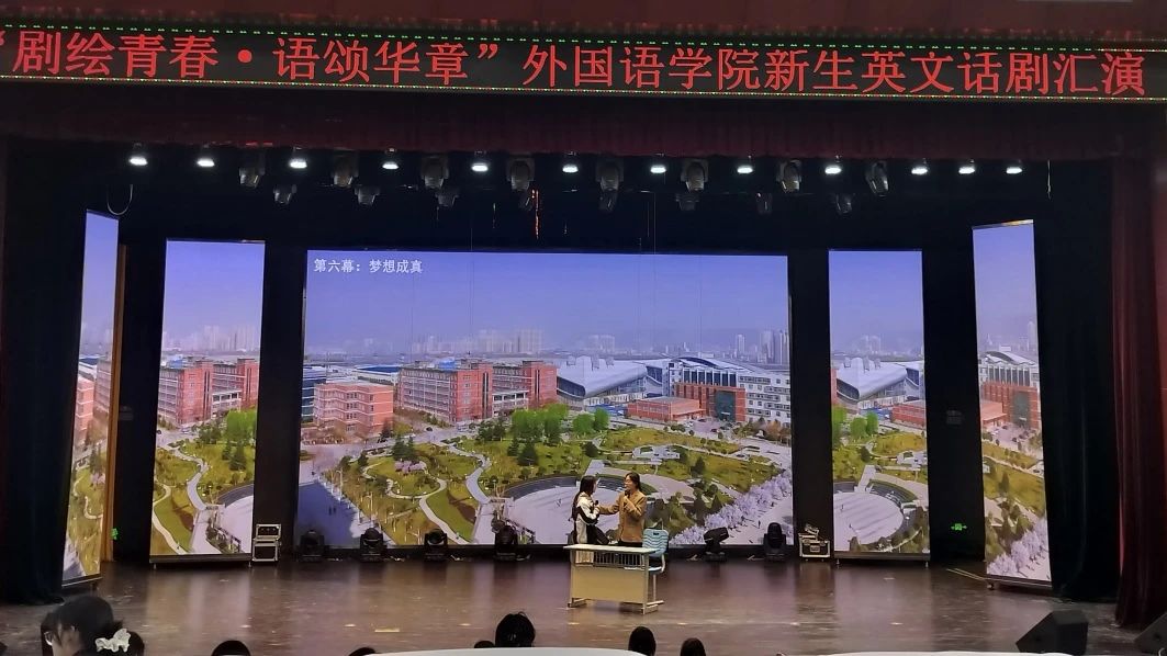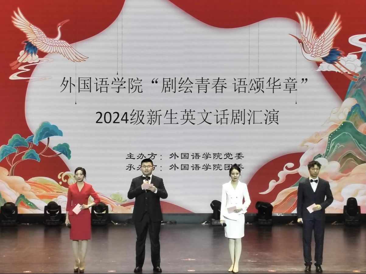 4月10日晚,best365中国官方网站在高新校区博文楼报告厅举办“剧绘青春 语颂华章”2024级新生英文话剧汇演,并通过抖音直播。