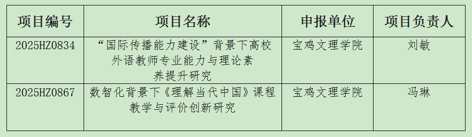 近日,陕西省社会科学联合会公布了陕西省哲学社会科学研究专项2025 年度“国际传播能力建设”重点研究项目立项结果,共立项63项。公司在此次评选中收获颇丰,成功立项2项。这两项立项均来自于公司,分别由冯琳副教授和刘敏副教授获批。