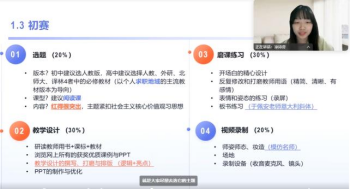 在经验分享环节,张继芳结合自己的参赛经历,从材料准备、教学设计、讲课练习和课程录制等四个方面进行了经验分享,建议大家根据个人特色,选择能充分展现自我的内容,结合现代教育技术手段,增强教学的趣味性和互动性。