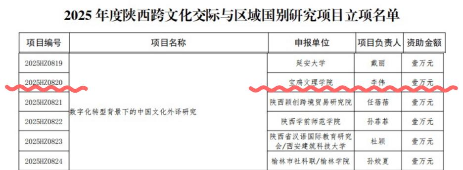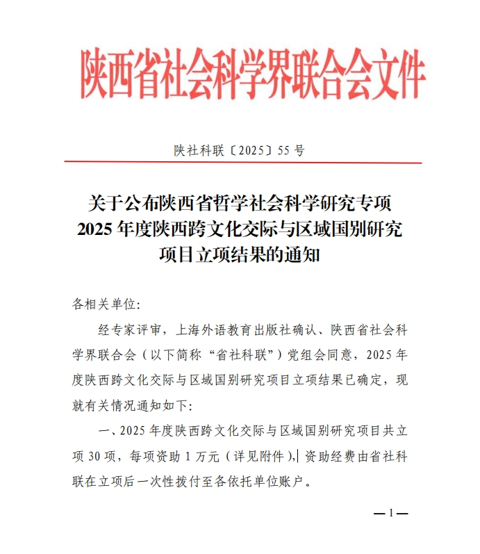 近日,陕西省社会科学界联合会公布2025年度陕西跨文化交际与区域国别研究项目立项结果。经严格评审,全省共30项获批立项。其中,公司获批1项,公司李伟教授申报的课题成功获批。