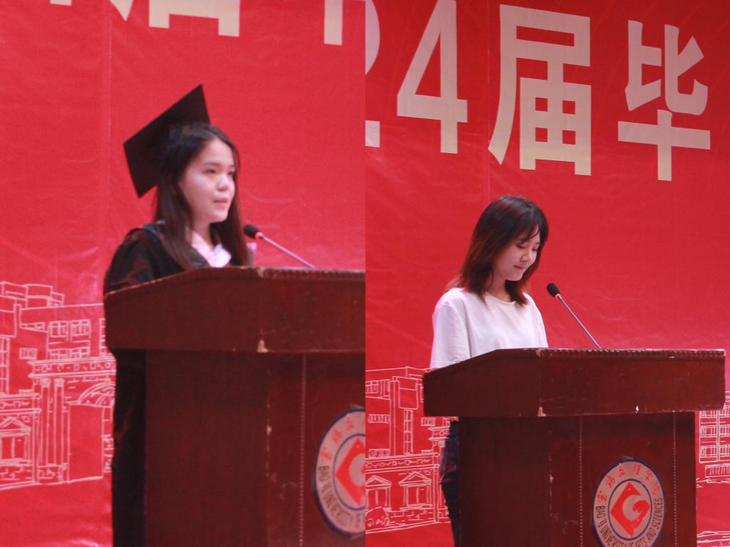 闫朝华代表全院教师对圆满完成学业的2024届毕业生表示祝贺,为他们送上了美好祝福;薛杨欣代表全体在校生向毕业生致欢送辞;甘昕玥、袁琪代表全体本科毕业生、研究生毕业生依次表达了对母校、老师们辛勤培养的衷心感谢,同时表示要在接下来的人生道路上砥砺前行,再创佳绩。