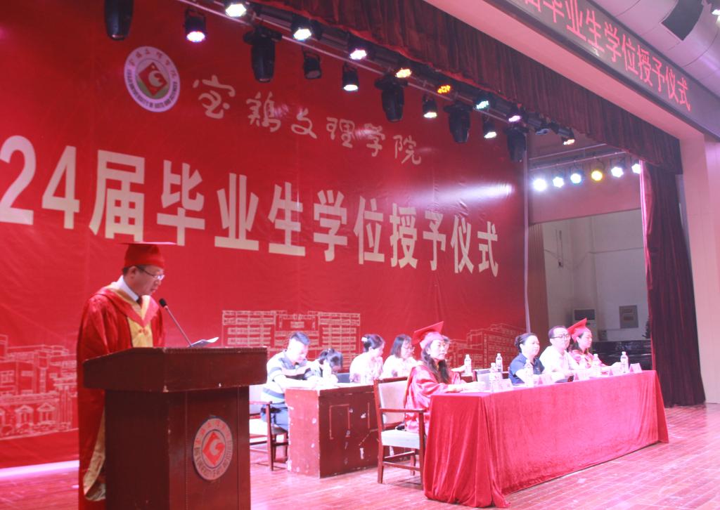 仪式在庄严的国歌声中开始。李伟首先宣读了2024届学位授予决议。伴随着《加冕进行曲》,李伟为毕业生逐一扶正流苏,冯琳为获得学士学位毕业生颁发学位证书,刘敏为获得硕士学位毕业生颁发学位证书。