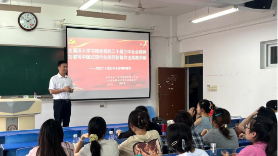 9月18日下午,邀请省委学习贯彻党的二十届三中全会精神专家宣讲团成员、马克思主义公司经理刘晓勇教授作了题为“全面深入学习领会党的二十届三中全会精神 为谱写中国式现代化陕西新篇做出高教贡献”的专题宣讲报告,帮助公司教职工深刻理解全会的召开背景、主要内容、重大成果、习近平总书记在全会上的重要讲话精神及主旨、《决定》提出的进一步全面深化改革的重大举措,切实增强师生贯彻落实全会精神的思想自觉和行动自觉,为公司的高质量发展提供强大的精神动力和组织保障。