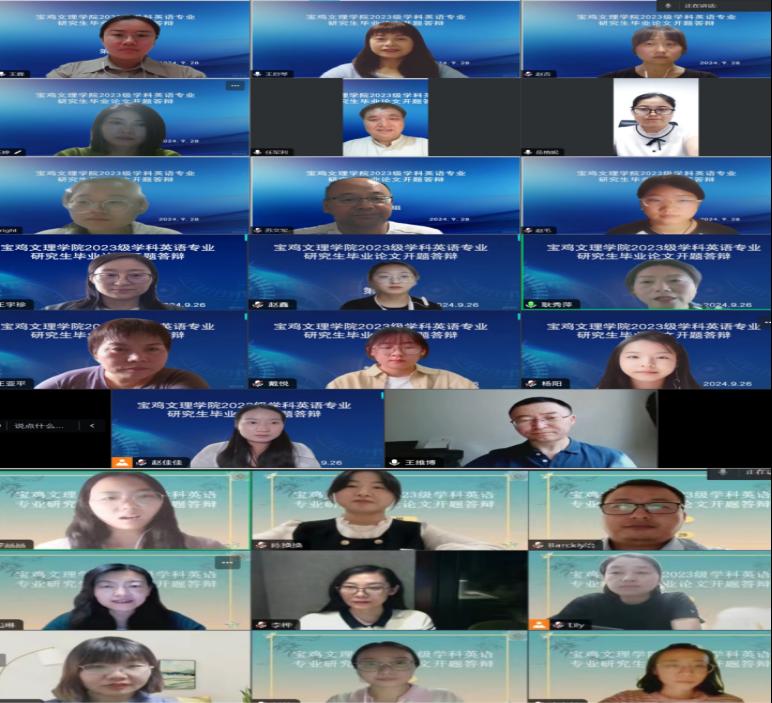9月25日至10月3日,best365中国官方网站2023级学科教学(英语)专业39名研究生学位论文开题答辩会顺利在线上举行。来自best365中国官方网站、西京公司人文与教育公司、咸阳师范公司best365中国官方网站及宝鸡市英语基础教育领域的37位专家担任评委。本次开题答辩会旨在检验研究生对学位论文选题的把握程度,为后续的研究工作奠定坚实基础。