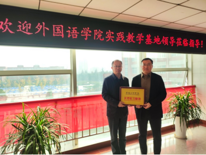 会前,李伟经理为今年的优秀实习基地西安艾克森翻译传播文化有限公司刘杰总经理赠予示范实习基地奖牌。
