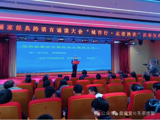 11月23日,由中国孔子基金会指导,宝鸡市孔子研究会、中共千阳县委宣传部、千阳县教育体育局、千阳县文化和旅游局主办的第四届儒家经典跨语言诵读大会“城市行·走进陕西”启动仪式在千阳县文化艺术中心举行。