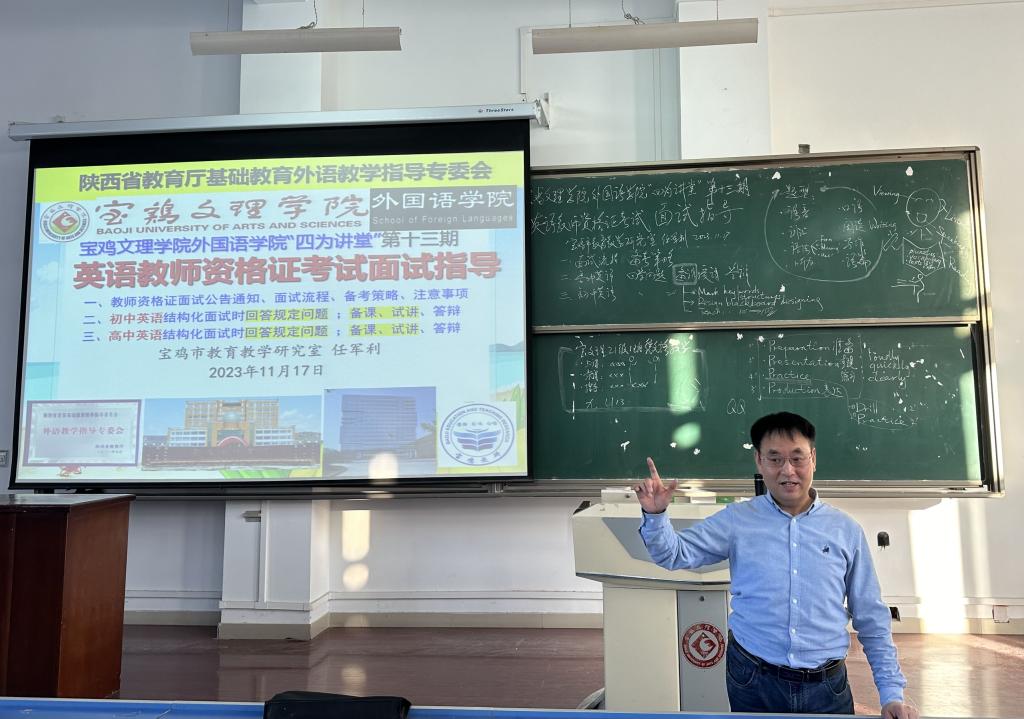 2023年11月17日下午,宝鸡市公司产品研究室正高级教师任军利老师应邀担任best365中国官方网站“四为讲堂”(第十三期)的主讲嘉宾,为公司二、三、四年级本科生,以及2023级学科教学(英语)研究生开展《英语教团队格证考试面试指导》讲座,讲座由英语系系主任赵涵博士主持。讲座上,任老师为员工分享了教团队格证面试的重点、要点,以及备课、试讲和答辩的相关注意事项,同时传授了思维导图、简笔画等非常实用且新颖的教学技能,帮助员工以更加可视直观的方式组织教学环节,呈现教学内容,让知识的传递更加高效且充满趣味性。本次讲座是公司积极开展校内外专家学者与基础教育一线教师协同育人机制的重要体现,为在校师范生与英语教学一线专家创造面对面交流的机会,受到与会者和参与者的一致好评,员工们纷纷表示会将在讲座中所学习到的先进经验和做法运用到日后学习和教学中。