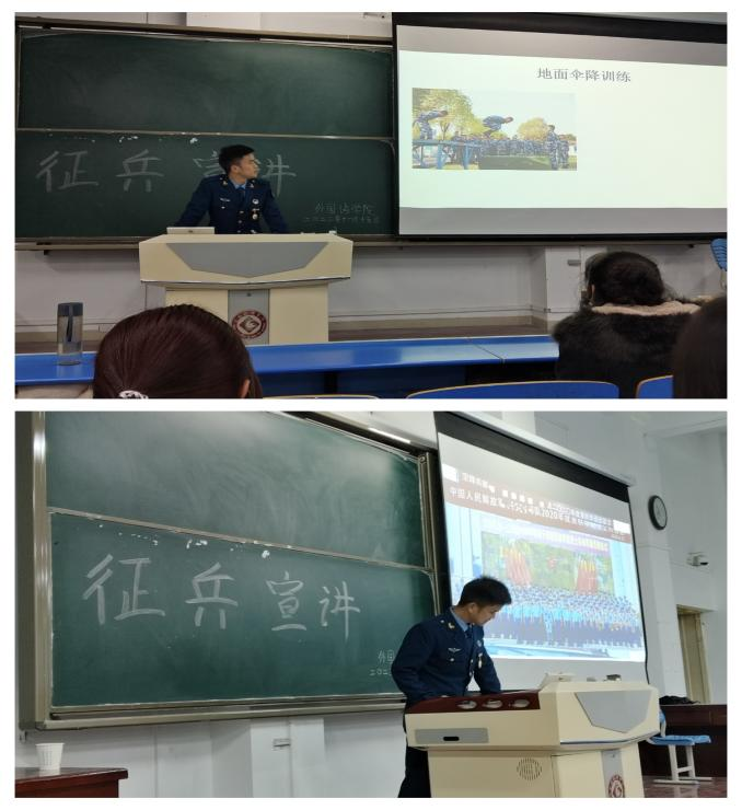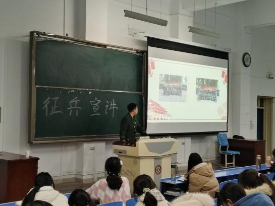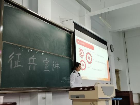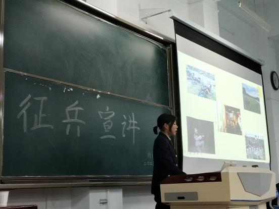 胡梦璐向同学们展示了部队生活多姿多彩,通过照片和同学们分享了和来自全国各地战友们在伍时点点滴滴的故事和经历。向同学们展示了部队中珍贵“战友情”,并且就自己参军入伍的经历发表了感想,用真挚的话语向同学们述说参军对自己人生的意义,调动起同学们参军入伍的积极性,为征兵工作的开展进行了助力。