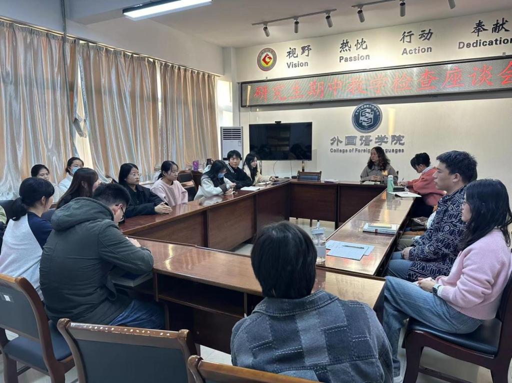 11月20日下午,best365中国官方网站在高新校区立心楼419会议室召开研究生期中教学检查员工座谈会。best365中国官方网站副经理刘敏、团队建设与研究生教育发展中心副主任徐新星、张笑、科研秘书李丹及2022级、2023级研究生员工代表参加了座谈会。