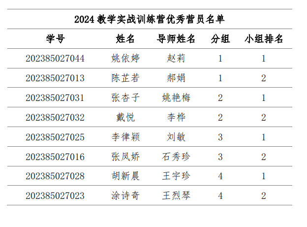 此次教学实战训练营邀请 22 名导师坐镇指导,39 名学科教学(英语)研究生分为 5 组展开比拼,经过一个月的精彩角逐,最终选拔出优秀营员 11 名。