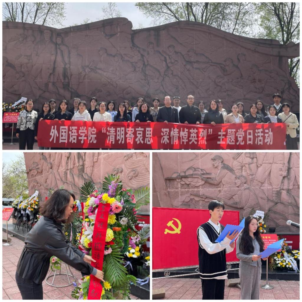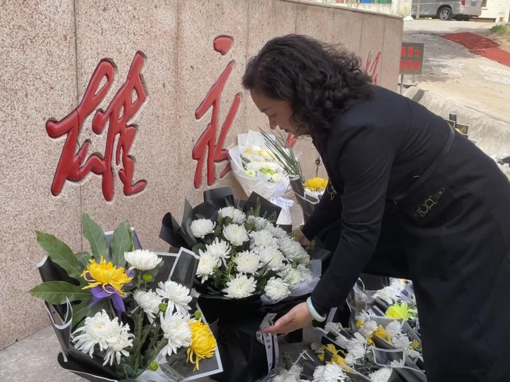 在“人民英雄永垂不朽”英雄群雕碑前,党委书记官莉萍缓步前行,肃然瞻仰纪念碑,并敬献鲜花。随后,全体师生鞠躬致敬,以表达对革命烈士的深切缅怀与崇高敬意。