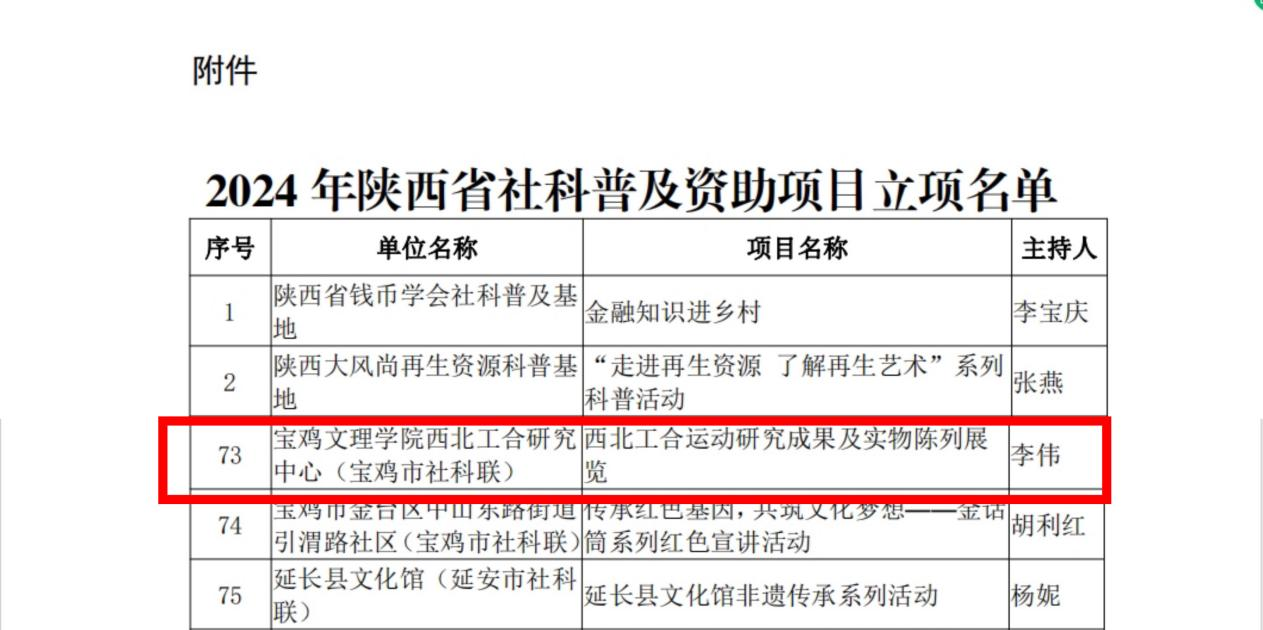近日,陕西省社会科学界联合会领导小组办公室公布了2024年陕西省社科普及资助项目立项名单,全省共获批81项,公司西北工合研究中心主任李伟教授获批2024年度陕西省社科普及资助项目。