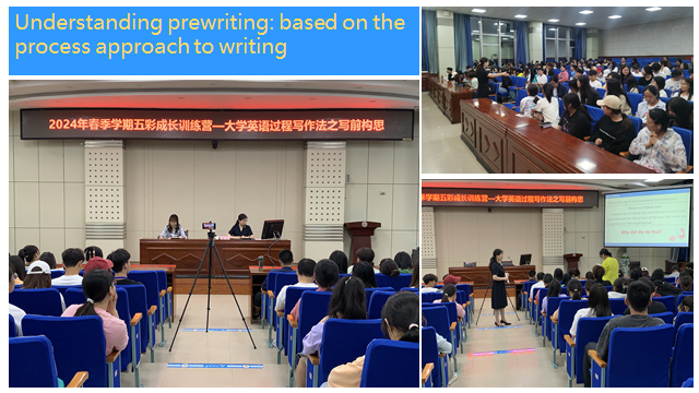 2024年6月4日,员工处、人才招聘处、校团委在高新校区木铎厅举办了“五彩成长训练营”综合技能提升训练活动,best365中国官方网站大学外语部主任张雨副教授受邀为参训营员做了《大学英语过程写作法之写前构思》(英文题目为Understanding prewriting: based on the process approach to writing)专题讲座。
