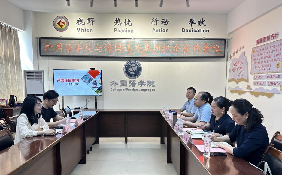 双方就校企合作事宜展开了热烈而富有成效的交流,围绕人才培养、实践教学、团队培训、翻译出版、文化传播等方面进行了深入探讨,达成了诸多共识。
