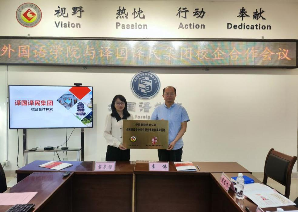 交流结束后,双方签署了校企合作协议,举行了全国翻译专业学位研究生教育实习基地授牌仪式,标志着双方的合作进入了一个全新的阶段。