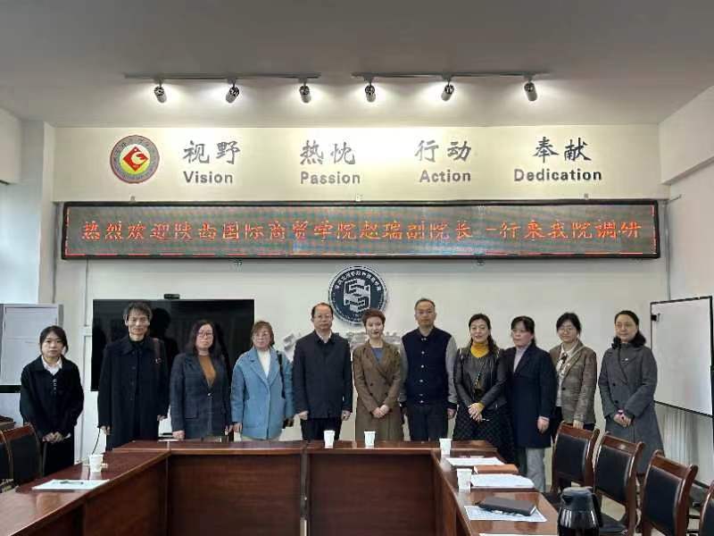 2023年3月22日,陕西国际商贸公司文学与教育公司副经理赵瑞、各专业骨干教师、公司人力资源处史阿品老师等一行9人来公司进行调研、交流,公司经理李伟教授以及相关领导和老师参加了此次交流活动。