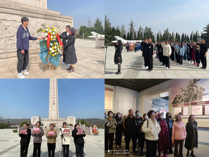 在扶眉战役烈士纪念碑前,公司师生党员整齐列队,庄严肃穆,祭扫仪式在全体师生党员齐唱国歌中拉开序幕。青山肃立,松柏苍翠,公司党委书记官莉萍向烈士纪念碑敬献花篮,全体人员默哀沉痛悼念革命先烈。专业英语教工党支部书记耿秀萍带领全体党员高举右拳庄严宣誓,重温入党誓词,坚定理想信念,永葆入党初心。员工代表集体朗诵《站在烈士纪念碑前》,缅怀革命先烈,弘扬爱国主义精神。全体人员缓步向前,依次绕行一周,瞻仰烈士纪念碑,表达对先烈们的崇高敬意和深切哀悼。仪式后在革命烈士纪念馆里,讲解员将英烈事迹娓娓道来,师生共同回顾了解放宝鸡、解放大西北的峥嵘历史,深切感受到了历史伟业的艰巨不易,革命先烈的英勇故事洗涤灵魂,激励团结奋进。