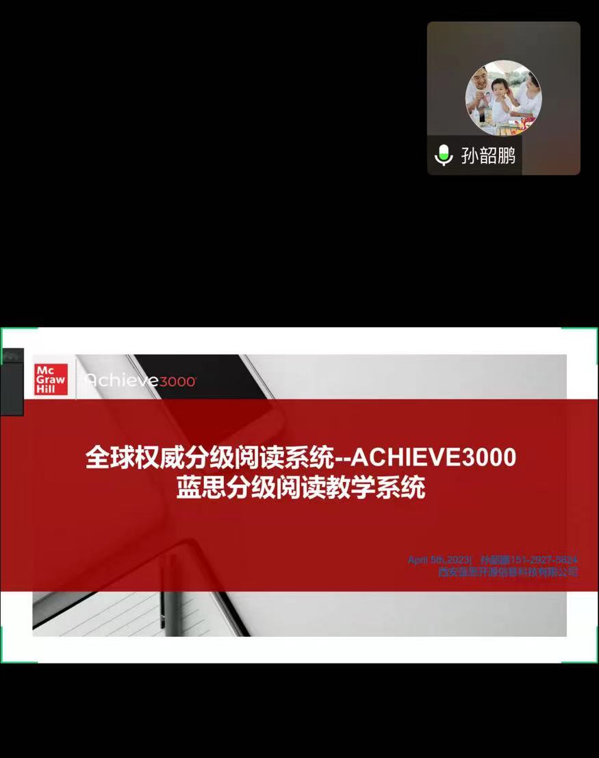 2023年4月5日晚7:30,best365中国官方网站2022级全体员工通过腾讯会议的方式进行了Achieve3000蓝思(Lexile)分级阅读在线课程培训,基础教研室部分任课老师参加了此次培训。