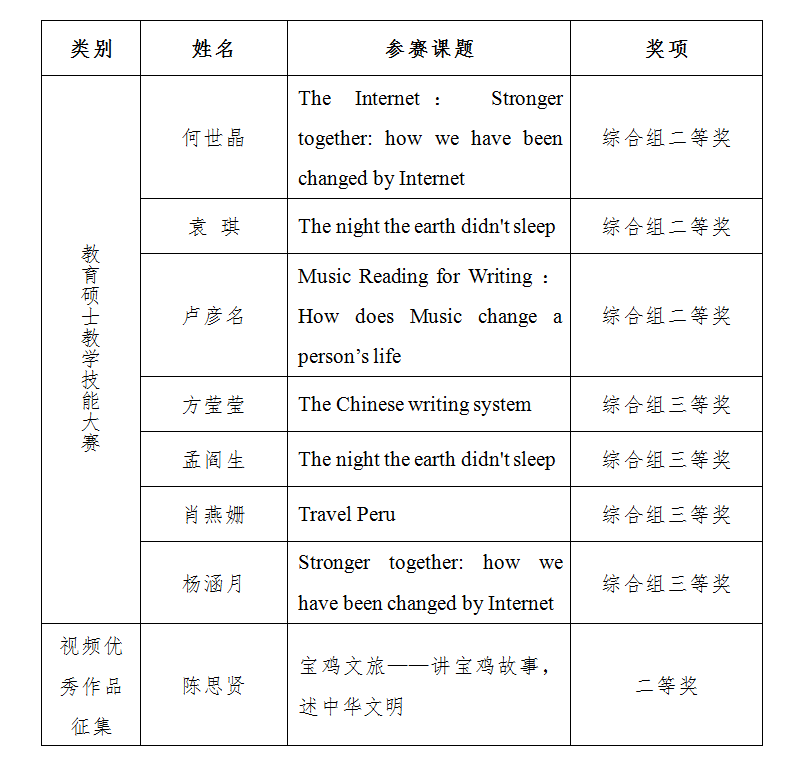 近日,公司研究生院联合各二级公司,举办了第二届研究生学术节。此次学术节以“六十五载峥嵘岁月 科创演绎青春风采 理想共筑文理华章”为主题,包含学术讲座、学术论坛、教育硕士教学技能大赛等多项活动。公司研究生踊跃参与并斩获佳绩,充分展现了公司研究生良好的学习风貌,也进一步激发了研究生主动学习和参与科学研究的积极性。依据宝文理院研字〔2023〕9号《关于表彰第二届研究生学术节获奖个人的决定》,何世晶、袁琪、卢彦名三位同学在教育硕士教学技能大赛中获综合组二等奖,方莹莹、孟阎生、肖燕姗、杨涵月四名同学在教育硕士教学技能大赛中获综合组三等奖;陈思贤在视频优秀作品征集中获得二等奖。