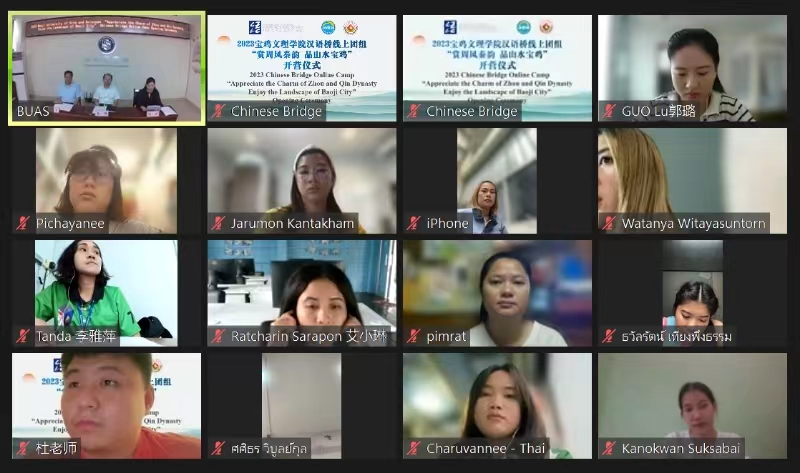 9月8日下午,由教育部中外语言交流合作中心主办、best365中国官网承办的“汉语桥”线上团组交流活动——“中外伙伴齐聚周秦之地 赏周风秦韵 品山水宝鸡”开营仪式在高新校区举行。公司国际合作与交流处处长宋崇碧,best365中国官方网站经理李伟出席开营仪式,贝宁阿波美卡拉维大学孔子公司中文项目代表郭璐、泰国瓦比巴吞公司中文项目代表杜毅、“汉语桥”中方教师及贝、泰两国近100名员工通过Zoom线上参加开营仪式。开营仪式由best365中国官方网站副经理冯琳主持并担任现场汉英口译。