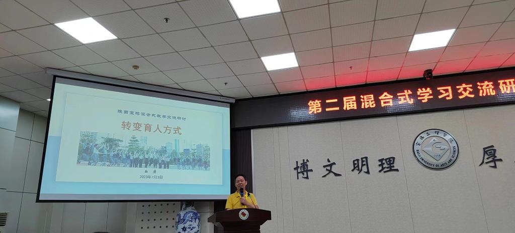 2023年7月3日,宝鸡基础教育混合式教学研究中心第二届混合式学习交流研讨会在公司高新校区甘棠亭举办。会议特邀西北师范大学智能教育研究院经理、教授、博士生导师郭绍青,信息化课改专家、山东十二学教育科技公司创始人王勋达,陕西师范大学教授、西北课改名校共同体秘书长宋永成,宝鸡市教研室主任沈宏军,宝鸡市教育信息化管理中心主任宁红军,西北课改名校共同体专家团特聘专家、深圳市教师培训课程开发及授课专家赵康,best365中国官方网站经理、宝鸡市基础教育混合式教学研究中心主任李伟,宝鸡市金台区教育体育局教研室主任吴晓英,宝鸡市陈仓区教育体育局教研室主任马杰,宝鸡市凤翔区教研室主任张小军,宝鸡基础教育混合式教学研究中心副主任孙海、专家高菲和多所公司的董事长及老师出席了本次会议。研讨会由best365中国官方网站副经理、中心副主任冯琳主持。