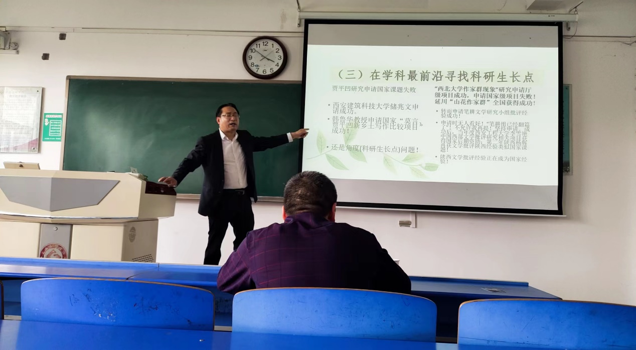 首先,李伟教授对孙新峰教授做了介绍,然后,孙教授结合自身科研以及研究生科研实际,讲述了在学科结合部寻找科研生长点的重要性,鼓励师生培养跨学科意识和问题意识;阐述了科研生长点的蕴育和表达,分享高层次科研体会。并激励师生:只要坚守学科基本品质,打通学科壁垒做科研,地方院校也能出产一流科研。最后,外国语学公司副经理史传龙教授做了总结发言,要求员工从“重、专、特、新、勤”五方面着手,努力提升自己科研点的发掘与研究能力。