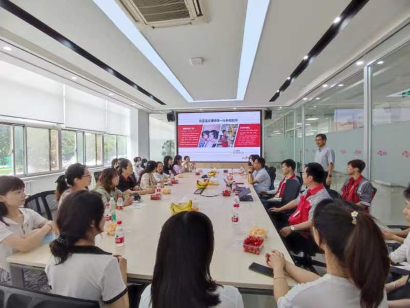 交流会上,支部书记耿秀萍说明了best365中国官方网站师生党员访企的来意和目的,党委书记官莉萍介绍了公司概况、专业设置和2022届毕业生情况。企业HR经理伍英东对公司的来访表示热情欢迎,向师生党员介绍了公司的发展历史、企业文化及岗位需求,并结合招聘工作中的案例向老员工传授了成功应聘的技巧和经验,对英语专业人才就职外资企业提出了“再掌握一门技能”的建议。两位员工用自己的求职经历和工作感受给员工们上了一堂生动鲜活的职业规划教育课。双方在愉快融洽的气氛中,就实习就业、人才培养、校企共建等事项进行了交流,企业负责人针对师生们的提问,进行了耐心细致地解答。