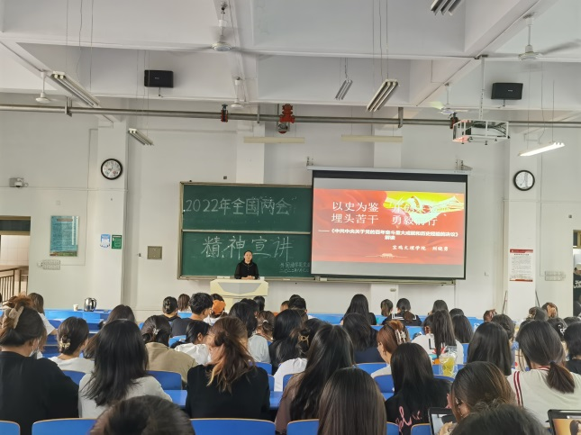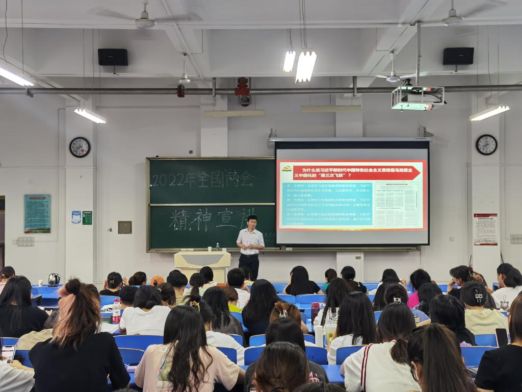 6月7日晚上,best365中国官方网站特别邀请宝鸡市委讲师团成员、全国基层理论宣讲先进个人、公司马克思主义公司经理刘晓勇教授在立心楼210教室作2022年全国 “两会”精神宣讲。宣讲会由公司党委书记官莉萍主持,2020级全体员工、员工党支部书记、辅导员认真聆听了宣讲。