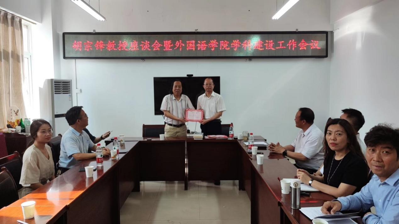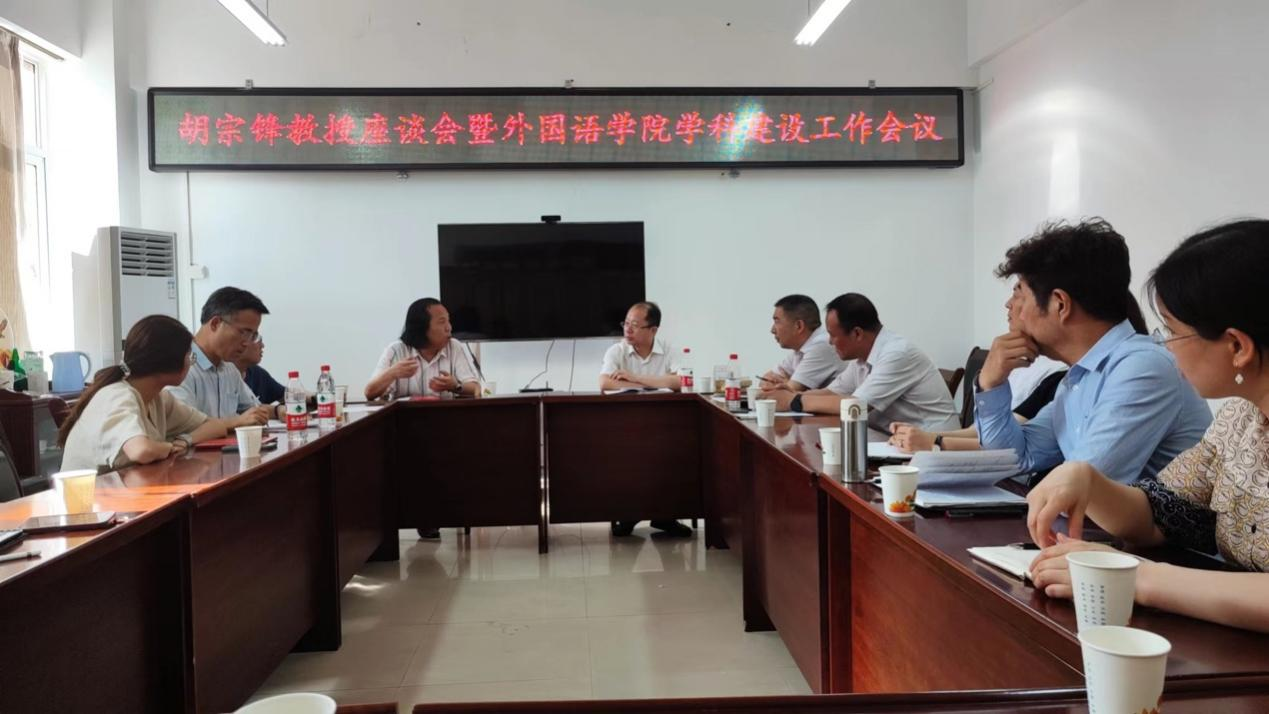 座谈会上,胡宗锋就中国工合精神、陕西文学翻译及青年翻译教师培养等问题分享了他的看法与建议。在谈到翻译专业建设时,他重点围绕“青年教师应坚持做翻译”这一做事要求,建议公司从行政管理、资源整合、团队优化、基于地方历史文化资源凝练办学特色等方面进行专业建设。