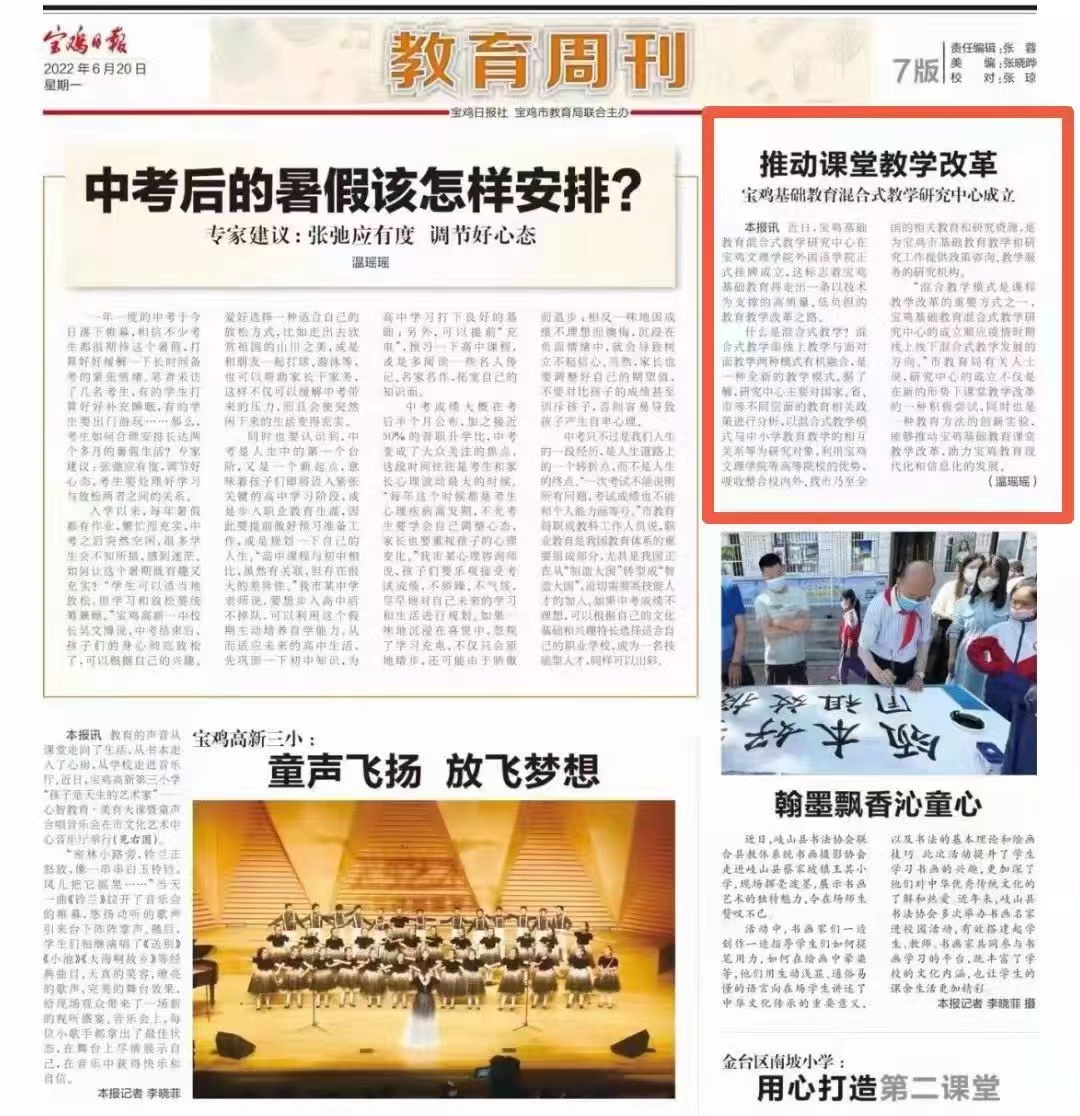 宝鸡日报刊登公司混合式教学中心成立