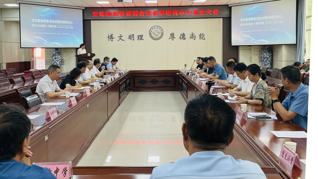 6月14日,宝鸡基础教育混合式教学研究中心成立大会在高新校区甘棠厅举行。副董事长王富平、宝鸡市教育局调研员杨安福、宝鸡市教育信息化管理中心主任宁红军等出席大会。