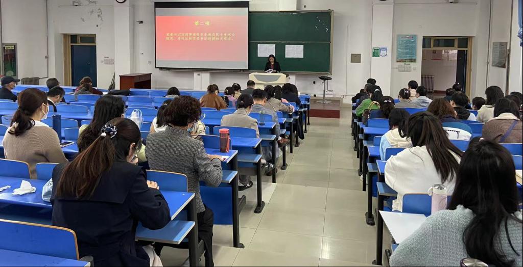 会上,官莉萍带领大家共同学习了习近平总书记在中国人民大学考察调研时发表的重要讲话精神、习近平致首届大国工匠创新交流大会的贺信和《十九大以来陕西省高校违纪违法典型案例警示录》中有关教师师德失范的案例,通报了公司党史学习教育专题民主生活会情况,传达了公司党委书记赵健同志在五届五次教代会上的讲话精神及对公司去年党建、教学、科研等工作的肯定和对今年工作的希望。教学副经理冯琳总结了前期本科教学工作开展情况,提出要以竞赛为抓手提质增效,同时还要重视课程思政建设。科研副经理史传龙宣布了best365中国官方网站2022年科研任务安排与督察安排,督促老师们迎难而上完成科研任务。杨子祁通报了公司就业形势,并向老师们传达了五一假期的出行政策,提醒大家做好疫情防控。
