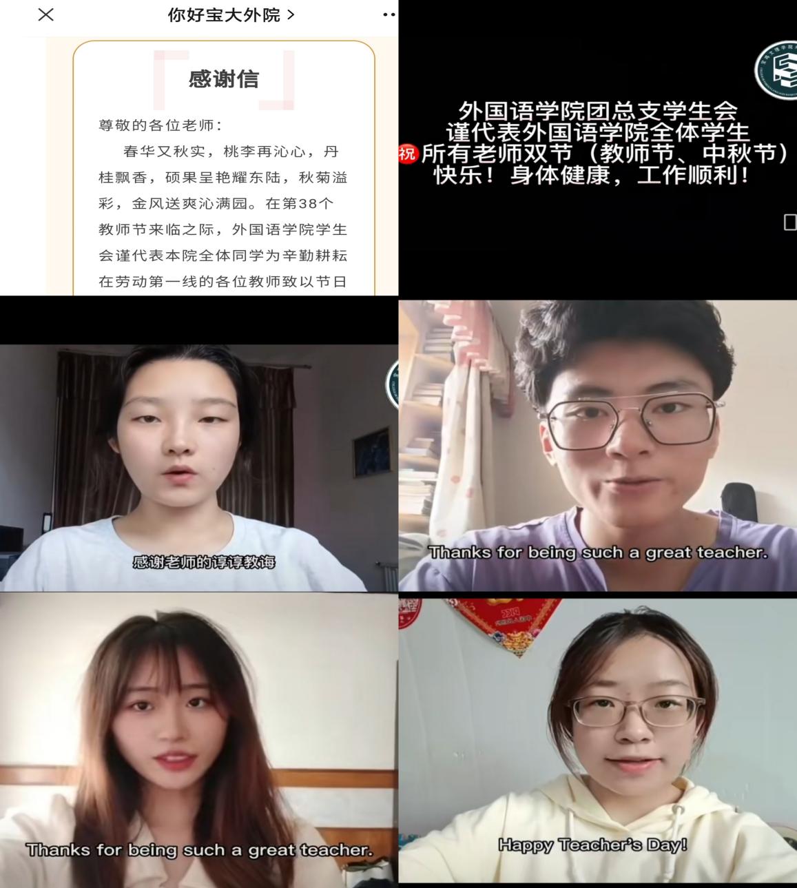 公司团总支员工会举行“教诲如春风,师恩深似海”感恩·教师节线上送祝福活动,广大同学将祝福以视频形式送给老师,感谢老师的辛苦培育和悉心呵护,感恩老师为他们的成长保驾护航!同时,开展线上“最美笔记”展示活动,以此感谢老师在疫情防控下坚守教书育人岗位!