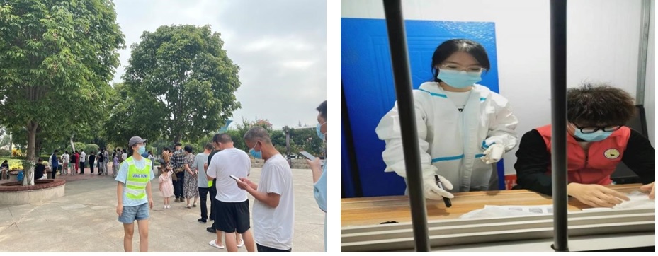 汤佳琪同学积极响应眉县疫情防控指挥部的号召,以不怕苦不怕累的精神战斗在疫情防控前沿,“挨家挨户”开展敲门行动,详细登记群众信息,在核酸检测现场开展扫码引导、信息录入、维持秩序等工作。严碧婷同学积极参与乾县石牛卫生院核酸检测工作,协助工作人员扫码、测温、检测,为没有智能手机的群众制作纸质版健康码,提高核酸检测效率。两位志愿者表示:“通过本次志愿服务,我们深切感受到医护人员的辛苦与不易,也切实懂得了青年一代的初心与使命、责任与担当。虽然本次志愿服务已经结束,但志愿服务之路还并未结束,我们也将继续前行,在未来的学习与生活中发扬志愿服务精神,以星火之名燃青春之光。”