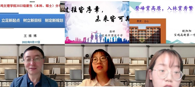 best365中国官方网站特邀全国优秀教师、金台中学高级教师王维博,渭滨中学青年骨干教师潘婷、宝鸡高新一中青年骨干教师欧阳阳3名优秀员工代表为2022级新生做了职业生涯规划分享。各位员工结合自己的工作经验、人生感悟,引导学弟学妹们树立爱国爱校、艰苦奋斗、团结拼搏、健康生活的价值观念,帮助新生树立学习榜样和奋斗目标,传递了昂扬的斗志,传承了奋斗的精神,展示文理人的精神风貌,激励着新生奋发向上。