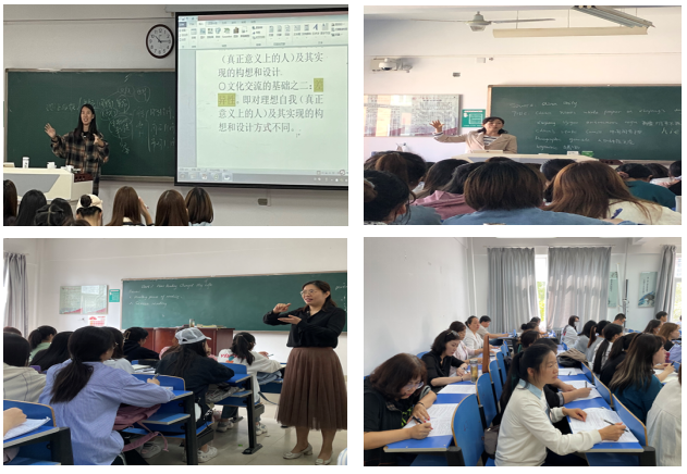 本次观摩活动分为三场。第一场是赵涵老师讲授的《中国文化概论》。赵涵老师在课堂上将爱国情怀、文化自信等思政元素融入到课程讲授当中,使教学内容和课程思政有效融合,实现课堂主渠道育人功能最大化。第二场是张文雅老师讲授的《高级英语》。张文雅老师将中国神话、宗教和科学探索融入到课堂讲授当中,培养员工的思辨能力和自主学习能力。第三场是卫蕾老师讲授的《综合英语》。卫蕾老师创新性地运用对比分析方法,引导员工感受不同文体的差异,借助云班课开展课堂活动,在教学中融入思政理念,培养员工用深度阅读和思辨阅读代替闲散的手机阅读。