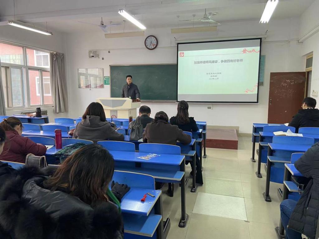 百年大计,教育为本;教育大计,教师为本。为深入学习贯彻十九届六中全会精神、习近平总书记关于教育的重要论述精神,大力推进师德师风建设,12月8日下午,best365中国官方网站在高新校区立心楼426教室举行师德师风专题讲座。公司邀请马克思主义公司党总支书记张选朝作题为《加强师德师风建设,争做四有好老师》的报告,公司党政领导及全体教职工参加了讲座。