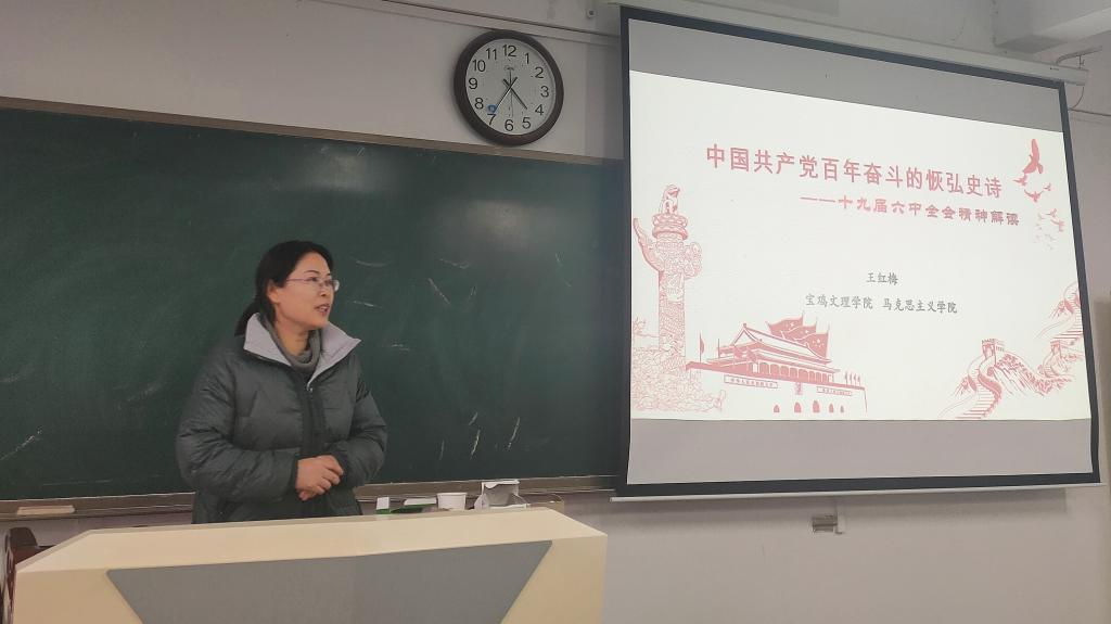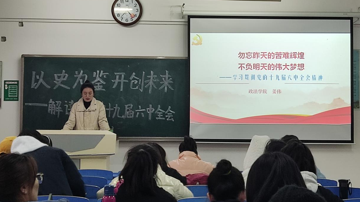 12月15日下午,best365中国官方网站在高新校区立心楼425、426教室举办党的十九届六中全会精神宣讲告会。公司宣讲团成员、马克思主义公司王红梅教授和政法公司研究生党员宣讲团成员姜伟分别为师生党员和共青团员做宣讲。报告会由公司党委副书记、副经理杨子祁主持。听取报告师生共计150余人。