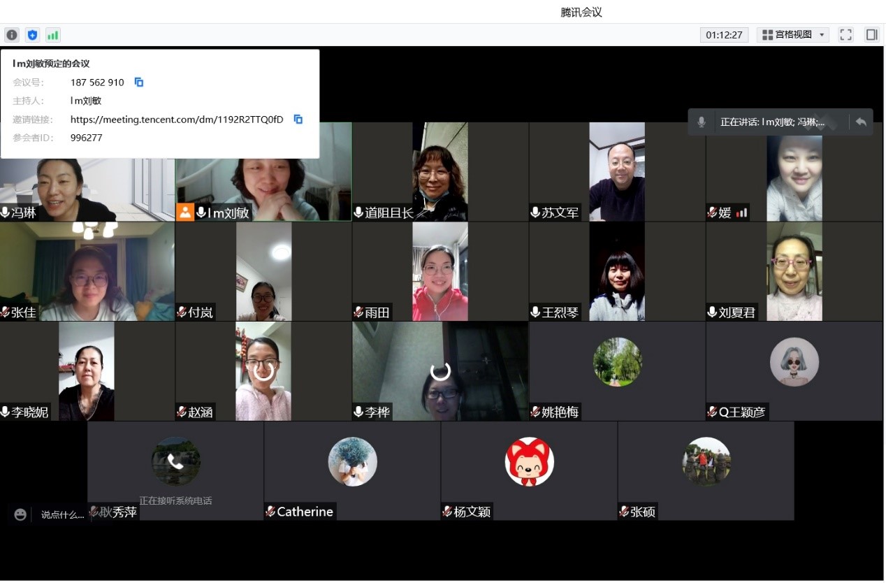 张雨和刘敏对教学平台、网络资源使用、教学质量监控、毕业论文指导工作、疫情下教研活动的开展、“外教社杯”词达人比赛以及参加《第六届全国高等公司外语教育改革与发展高端论坛》等工作进行了具体的安排。与会教师针对在线教学中出现的问题进行了深入交流和探讨,并分享了各自的在线平台使用经验和员工管理心得,还就外语类员工语言基本功训练、员工学习主动性培养、员工积极心理建设等问题展开了讨论。