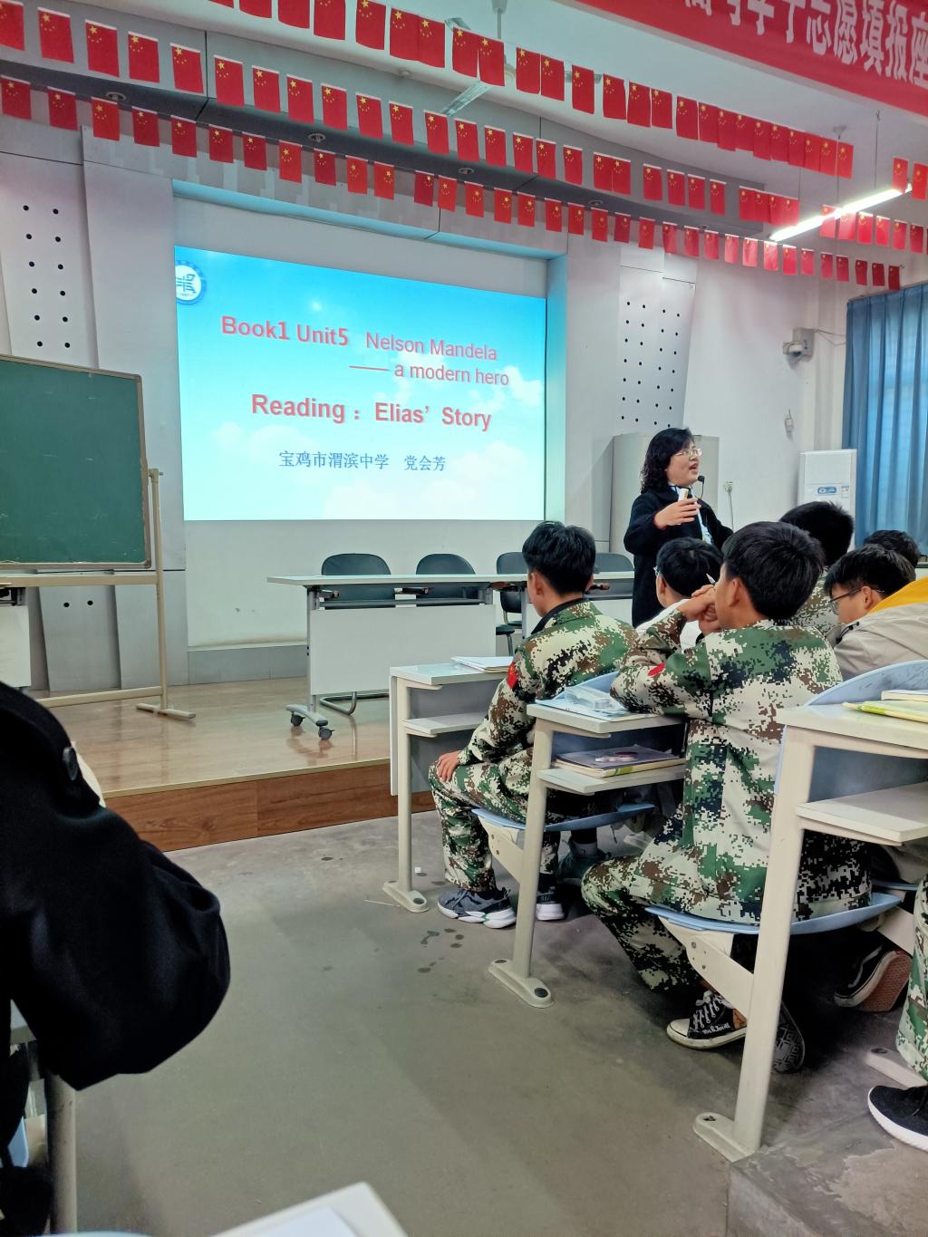 观摩渭滨中学党会芳老师的一堂精彩示范课:Book1 Unit5 Nelson Mandela Reading--Elias’ story. 党老师精妙的教学设计,丰富多元的课堂评价,循循善诱的教态和娴熟驾驭课堂的技能使我们受益匪浅。 教学过程主线明确、层层递进,凸显英语学科核心素养。