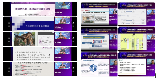 上午会议由十余位来自各个领域的专家学者进行了专题报告。谢维和教授强调了外语教学的目的,为高等教育的“双循环”打下基础。史静寰教授从政策层面宏观解读了中国特色“双一流”建设评价体系。钟周教授谈到了全球胜任力人才培养和探究,并分享了清华大学的具体培养案例。孙茂松教授通过案例分析了人工智能与其他学科的融合,提出了人工智能和语言教育的思考。于歆杰教授生动而有趣地阐释了混合式教学的概念,并分享了自己的国家精品在线开放课,详实有逻辑,值得思考和借鉴。