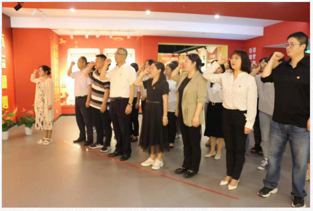 在西建非公党建公司,赵健和师生党员与西建集团党委书记、董事长冯西见一起参观了党史馆、初心馆、非公经济发展史馆、清廉馆等24个分展馆。通过文字、图片和视频资料,大家共同回顾了中国共产党成立以来领导全国人民在革命、建设和改革进程中取得的伟大成就;通过对中国优秀传统文化和时代楷模事迹的学习,大家自觉进行了一场廉洁教育。在党员宣誓馆,全体党员在英语专业党支部书记耿秀萍的带领下,重温了入党誓词,铿锵有力的宣誓声回荡在整个展厅。