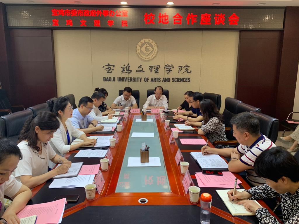 2021年7月2日,公司与宝鸡市委市政府外事办公室、宝鸡市人民对外友好协会校地合作座谈会在高新校区图书馆806会议室举行,best365中国官方网站经理李伟主持座谈会。公司党政办公室主任王永君、党委宣传部长冯飞龙、科研管理处处长王晓玲、国际合作与交流处处长宋崇碧、公司党委书记官莉萍、党委副书记苗亚静、大学外语部主任张雨、翻译服务中心主任苏文军、翻译系主任鱼为全、日语博士闫朝华、韩语博士张硕,宝鸡市委市政府外事办公室主任、宝鸡市人民对外友好协会常务副会长韩微、市委外办副主任柯昌波、董海琴、市对外友好协会专职副会长卢巍、市委外办综合科科长王娇、市委外办外事科科长张昕、市对外友好协会工作人员吕鹏飞等参加座谈。