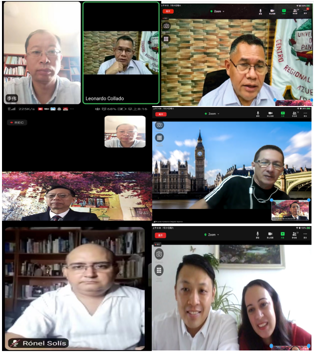 2021年7月31日,应美国齐鲁文化促进会海外联盟会长、巴拿马孔子学堂董事长刘科先生邀请,best365中国官方网站经理李伟教授与巴拿马大学董事长Leonardo Collado 教授通过Zoom平台进行线上会谈。巴拿马大学教师代表 Lluminada De Gonzalez、Edgardo Gutierrez、Mirlan Milord、Ronel Solis、Hercilia Dominguez, 公司青年教师——汉语国际教育专业赵涵博士等参加了会谈。