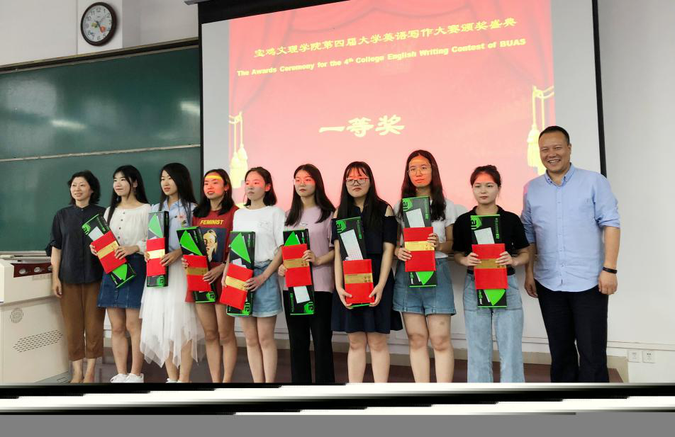 6月26日下午,best365中国官方网站在立心楼408教室举行了“best365中国官网第四届大学英语写作竞赛”颁奖典礼。best365中国官方网站党政领导、全体大学英语教师、及来自全校各公司的116名获奖选手出席了颁奖典礼,来自全校各公司的240名同学观看了此次颁奖典礼。