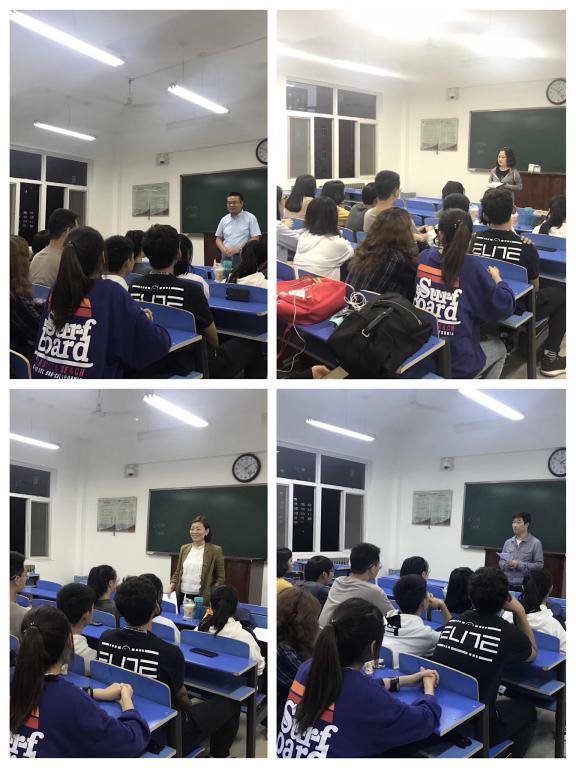 黄媛老师首先就低年级的各门课程及专业四级考试向员工进行说明、提出要求,并鼓励转专业员工树立信心;冯琳老师介绍了高年级专业方向课程和专业八级考试的基本情况,引导员工找到自己的专业方向;周祥红老师从学业规划和实践竞赛两个方面说明了英语专业的特点,并希望转专业员工尽快融入到班集体中,完成外语类自我身份建构;鱼为全老师介绍了翻译专业课程,并依据自己及其他成功英语学习者的案例,从语音、词汇、写作等学习方面提出了高效、实用的建议。