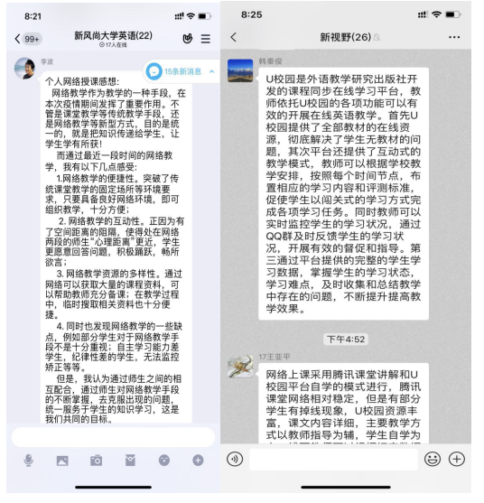 大学外语部任课教师开展教学改革研讨并增强课堂教学改革经验的交流和推广。我们借助各大教学平台信息服务功能,充分发挥“互联网+教育”优势,多措并举向“线上教学”要质量、求实效。截至3月22日,大学外语部全体教师全面开展线上教学。大部分教师还