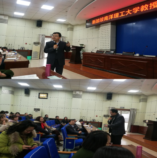 12月16日至19日下午14:30-16:30,新加坡南洋理工大学郭黎波博士(Dr. Guo Libo) 分别在新校区木铎厅和立心楼为best365中国官方网站200余名师生连续作了四场关于外语教学与科研的系列报告,报告会分别由best365中国官方网站经理王卫强教授、教学经理史传龙教授、科研经理李伟教授和王烈琴教授主持。系列报告采用讲授、互动、讨论等形式进行,会场气氛十分热烈。郭黎波博士的第一场报告(Linguistic landscape in Singapore)图文并茂、绘声绘色地向听众呈现了一幅多民族、多语言、多文化的新加坡的语言景观,介绍新加坡的四语官方语言政策和双语教育政策,加深了听众对语言环境、语言政策和语言态度相互关系的认识与理解。第二、三场报告采用讲授、互动等形式围绕英语论文写作(Writing up your research in language studies)中存在的主要问题展开讨论,对公司员工和教师的论文写作都有很大的帮助。最后一场报告(Evaluating multimodal literacy and Proposals)重点讨论多媒体时代传统的语言文字能力(literacy)概念的重新界定、内容构成及其培养途径。